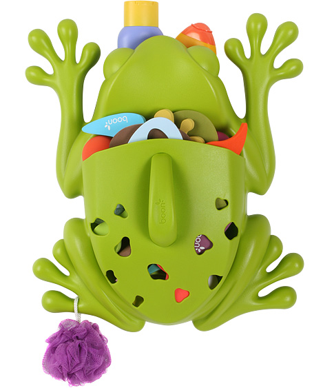 The BOON Frog is a popular amphibian whose habitat is in your tub! They stick to the wall to store & keep things tidy. Whether it be toys loaded to the brim, bubbly soap or extra odds & ends to hang from their feet or fingers. The back of the frog is a drainable scoop that helps to prevent everything from getting yucky with mildew & scum. Mount this to your wall & make bath time much more fun & easy!
